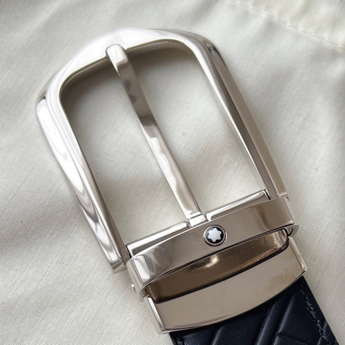 Montblanc Calfskin Grained Smooth Leather Reversible Belt with Star Logo Pin Buckle Palladium 몽블랑 카프스킨 그레인 스무스 레더 리버서블 벨트 스타 로고 핀 버클 황동 베이스 팔라듐 피니시 MB131188 3.5cm
