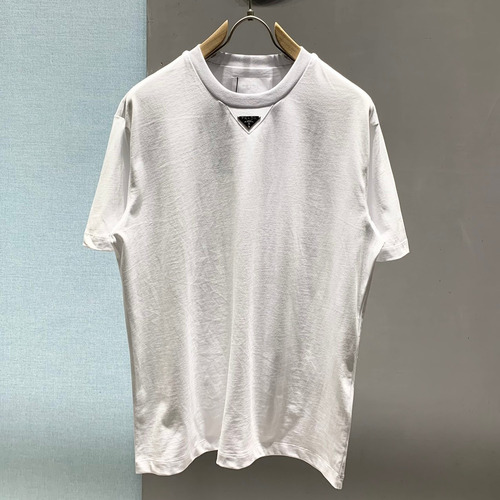 Prada SS26 Enamel Metal Triangle Logo Cotton T-Shirt 프라다 SS26 에나멜 메탈 트라이앵글 로고 코튼 티셔츠