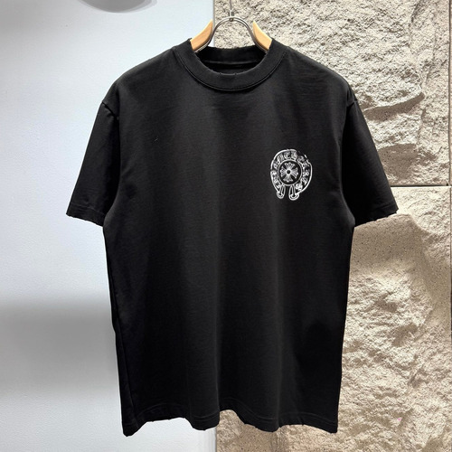 고객님께서 지금보시고 계시는 상품은 크롬하츠 특유의 다크 스트릿 감성을 담은 디스트로이드 호스슈 프린트 코튼 티셔츠입니다. 280g 중량의 32수 더블 코튼 원단을 사용하여 부드러운 촉감과 함께 탄탄한 구조감을 제공하며, 장시간 착용에도 형태 변형이 적습니다. 전면에는 빈티지 감성이 강조된 호스슈 프린트가 적용되어 강렬한 첫인상을 완성하며, 후면에는 호스슈 그래픽과 서클형 레터링 디테일이 더해져 시각적인 완성도를 높였습니다. 탈색 프린팅 기법을 활용하여 그래픽의 입체감과 내구성을 동시에 확보한 스트릿 아이템입니다. 구성품: 본품 280g 더블 코튼 원단 적용 호스슈 그래픽 프린트 디자인 탈색 프린팅 공정 적용 루즈핏 실루엣 적용 ■ 사이즈 정보 S: 기본 기장, 가슴 여유, 루즈핏 M: 기본 기장, 가슴 여유, 루즈핏 L: 기본 기장, 가슴 여유, 루즈핏 XL: 기본 기장, 가슴 여유, 루즈핏 XXL: 기본 기장, 가슴 여유, 루즈핏