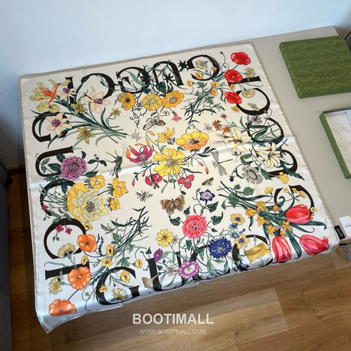 제품명 Gucci Logo Floral Silk Square Scarf 100% Silk Print Scarf 구찌 로고 플로럴 실크 스퀘어 스카프 90cm