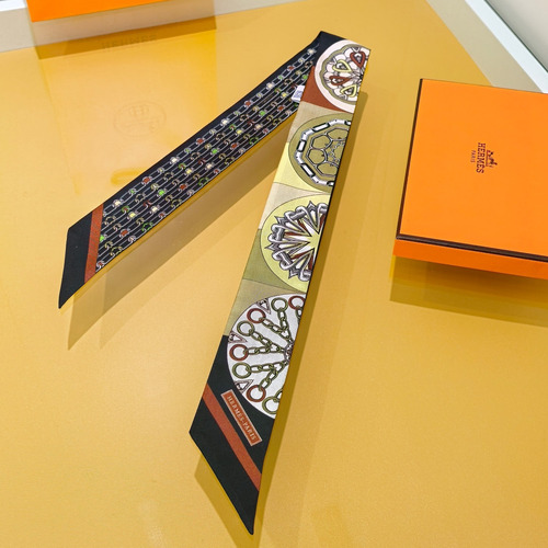 Hermes Splendid Bridle Floral Silk Twill Double Sided Twilly Scarf 100% Silk Print Scarf 에르메스 스플렌디드 브라이들 플로럴 실크 트윌 더블사이드 트윌리 스카프 PHMS2520 86cm |