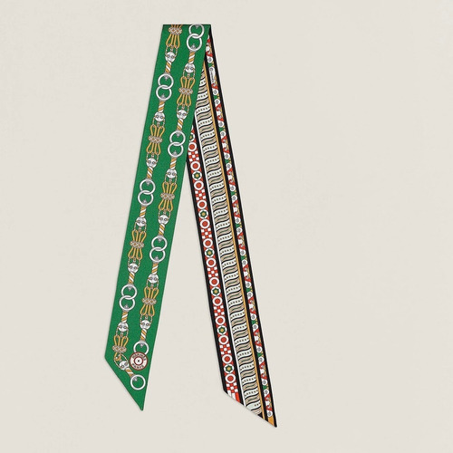 Hermes Splendid Bridle Floral Silk Twill Double Sided Twilly Scarf 100% Silk Print Scarf 에르메스 스플렌디드 브라이들 플로럴 실크 트윌 더블사이드 트윌리 스카프 PHMS2520 86cm |