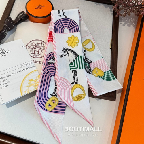 고객님께서 지금보시고 계시는 상품은 에르메스의 Pop Horse 테마가 적용된 실크 트윌리 스카프입니다. 말 모티프를 현대적인 감각으로 표현한 그래픽과 고급 실크 소재가 조화를 이루어 다양한 스타일링에 활용 가능한 아이템입니다. 구성품: 정품 박스, 더스트백, 쇼핑백, 구매 영수증 포함 Pop Horse 테마 디자인 적용 더블 사이드 실크 구조로 양면 활용 가능 86cm 길이로 다양한 스타일 연출 가능 헤어밴드 및 가방 장식 등 다용도 활용