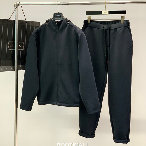 Zegna SS26 Cotton Blend Zip Jacket and Pants Set with Logo Print 제냐 SS26 코튼 혼방 집 재킷 팬츠 세트 로고 프린트 |