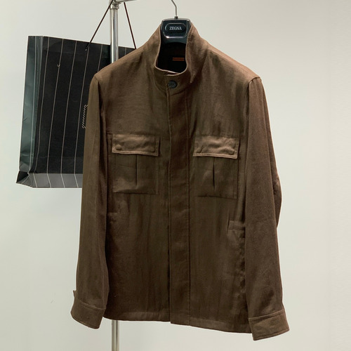 Zegna SS26 Cotton Blend Stand Collar Zip Jacket with Logo Print 제냐 SS26 코튼 혼방 스탠드 카라 집 재킷 로고 프린트 |