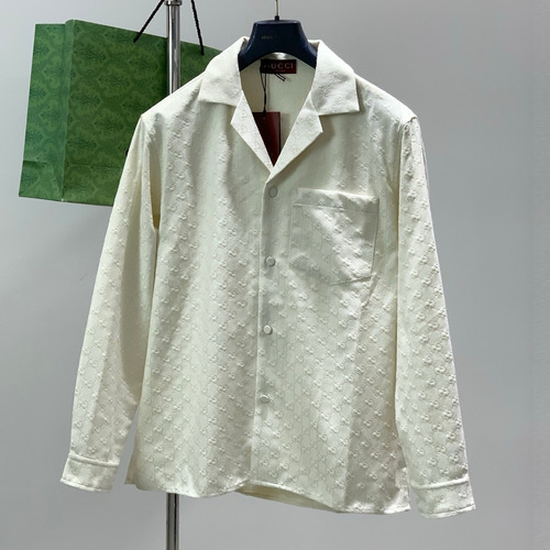 고객님께서 지금보시고 계시는 상품은 Gucci SS26 컬렉션의 코튼 혼방 카라 재킷입니다. 고급스러운 자카드 패턴과 세련된 실루엣이 결합된 프리미엄 캐주얼 아우터입니다. 구성품: 본품, 행거, 더스트백 포함 코튼 혼방 카라 재킷 자카드 로고 패턴 디테일 적용 깔끔한 실루엣으로 다양한 스타일링 가능 데일리 및 캐주얼 스타일 활용 가능 ■ 사이즈 정보 S: 총장 72cm, 가슴 112cm, 어깨 48cm M: 총장 73cm, 가슴 116cm, 어깨 49cm L: 총장 74cm, 가슴 120cm, 어깨 50cm XL: 총장 75cm, 가슴 124cm, 어깨 51cm