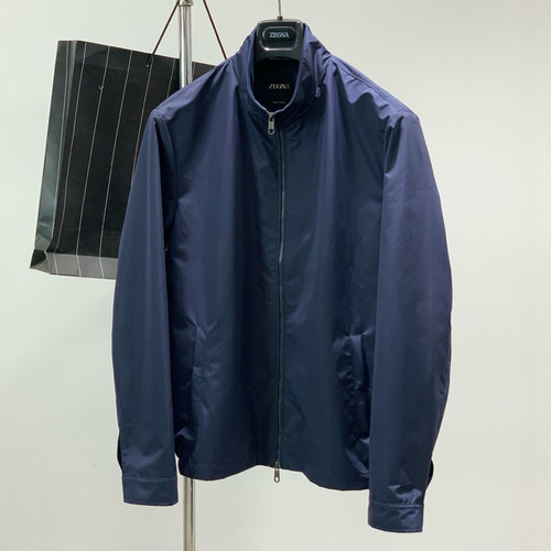 제품명 Zegna SS26 Cotton Blend Stand Collar Zip Jacket with Logo Print 제냐 SS26 코튼 혼방 스탠드 카라 집 재킷 로고 프린트
