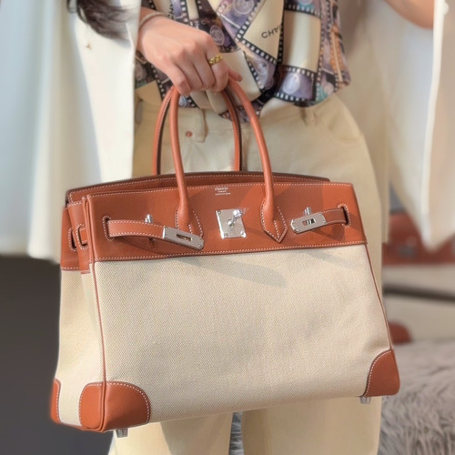 Hermes Birkin 35 Swift Leather Canvas Tote Bag with Flap Lock Detail 에르메스 버킨 35 스위프트 레더 캔버스 토트백 플랩락 12110013 35cm |