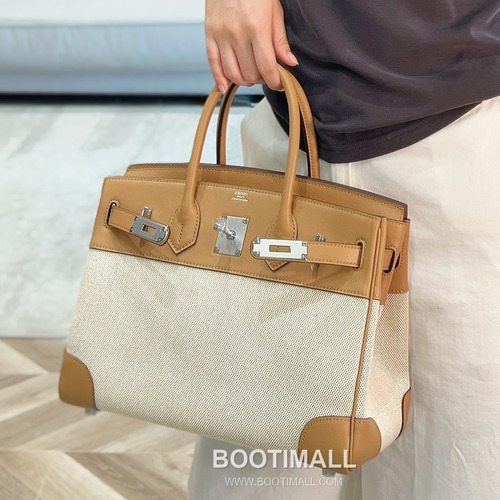 Hermes Birkin 30 Swift Leather Canvas Tote Bag with Flap Lock Detail 에르메스 버킨 30 스위프트 레더 캔버스 토트백 플랩락 12105018 30cm |