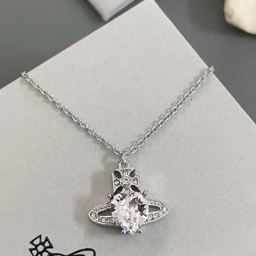 Vivienne Westwood Heart Orb Crystal Brass Gold Plated Necklace with Saturn Pendant 비비안웨스트우드 하트 오브 크리스탈 황동 골드도금 네클리스 새턴 펜던트 |