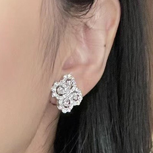 Harry Winston Diamond Loop Clover Sterling Silver 925 Gold Plated Stud Earring with Crystal Detail 해리윈스턴 다이아 루프 클로버 스털링 실버 925 골드도금 스터드 이어링 크리스탈 디테일 |