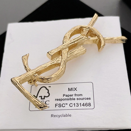 Saint Laurent Bark Texture Brass Gold Plated Brooch with Pin Clasp Detail 생로랑 바크 텍스처 황동 골드도금 브로치 핀 클래스프 디테일 |