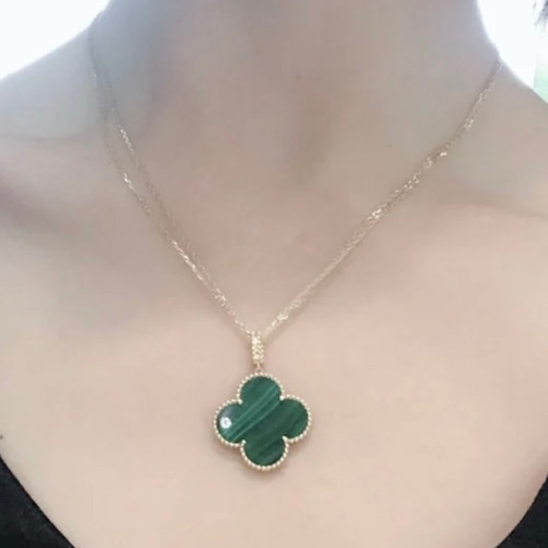 Van Cleef & Arpels Alhambra Clover Malachite Onyx Mother of Pearl Sterling Silver 925 Necklace with Beaded Chain 반클리프아펠 알함브라 클로버 말라카이트 오닉스 자개 스털링 실버 925 네클리스 비드 체인 |