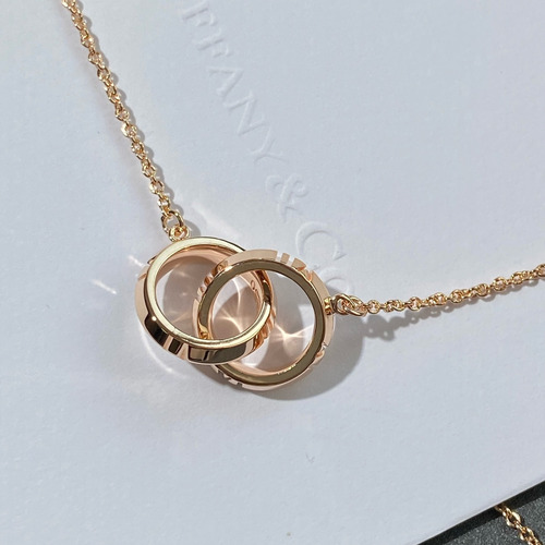 Tiffany & Co Atlas X Closed Interlocking 18K Rose Gold Necklace with Double Ring Pendant 티파니앤코 아틀라스 X 클로즈드 인터로킹 18K 로즈골드 네클리스 더블 링 펜던트 |