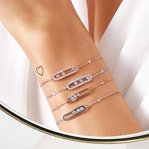Messika Move Three Diamond Sterling Silver 925 Bracelet with Sliding Stone Detail 메시카 무브 쓰리 다이아 스털링 실버 925 브레이슬릿 슬라이딩 스톤 디테일 |