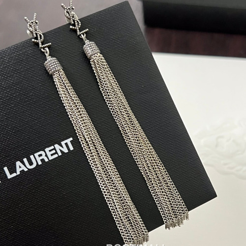 Saint Laurent Tassel Brass Gold Plated Drop Earring with Fringe Chain Detail 생로랑 태슬 황동 골드도금 드롭 이어링 프린지 체인 디테일 |