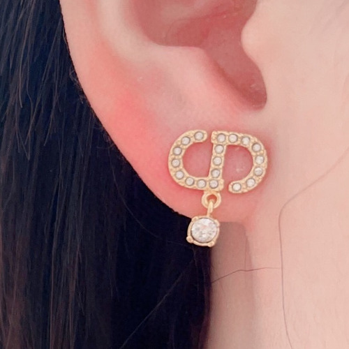 Dior CD Full Crystal Brass Silver Plated Stud Earring with Drop Pendant 디올 CD 풀 크리스탈 황동 실버도금 스터드 이어링 드롭 펜던트 |