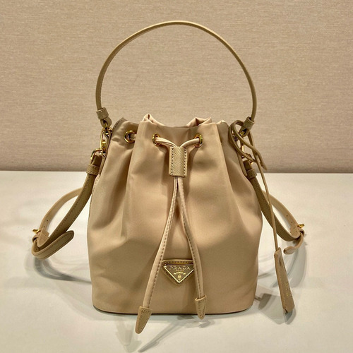 Prada Nylon Bucket Bag with Calfskin Strap Triangle Logo Key Charm Detail 프라다 나일론 카프스킨 스트랩 트라이앵글 로고 키참 버킷백 1BE067 15.5cm |
