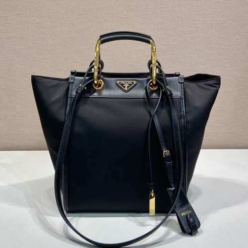 Prada Re-Nylon Geometric Tote Bag with Leather Handle Triangle Logo Detail 프라다 리나일론 지오메트릭 레더 핸들 트라이앵글 로고 토트백 1BG578 23cm |