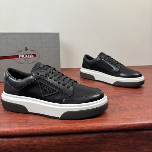 Prada Waxed Calfskin Mesh Patchwork Low Sneakers with Triangle Logo Detail 프라다 왁싱 카프스킨 메쉬 패치워크 로우 스니커즈 삼각 로고 디테일 4.5cm