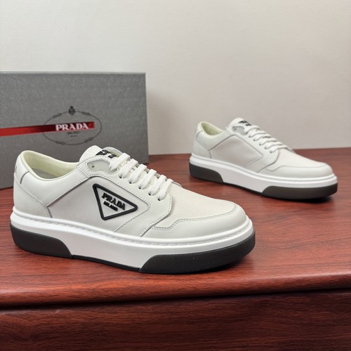 Prada Waxed Calfskin Mesh Patchwork Low Sneakers with Triangle Logo Detail 프라다 왁싱 카프스킨 메쉬 패치워크 로우 스니커즈 삼각 로고 디테일 4.5cm