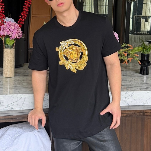 Versace 2026 S/S Cotton Medusa Crystal Embellished Embroidered T-Shirt 베르사체 2026SS 코튼 메두사 크리스탈 자수 티셔츠 1