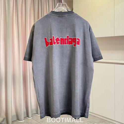 Balenciaga 2026 S/S Cotton Distressed Washed Crystal Silicone Logo T-Shirt 발렌시아가 2026SS 코튼 디스트로이드 워싱 크리스탈 실리콘 로고 티셔츠 |