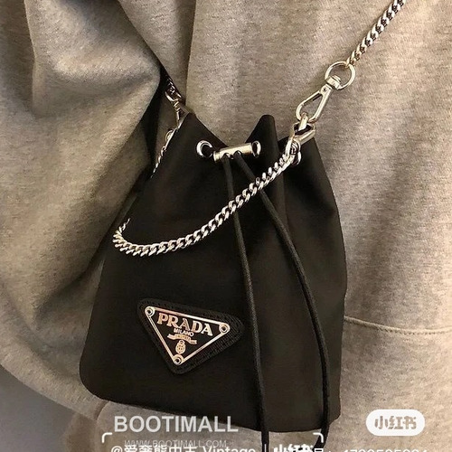 Prada Nylon Mini Bucket Bag with Chain Strap and Drawstring Closure 프라다 나일론 체인 스트랩 드로스트링 미니 버킷백 1BH612 12cm |