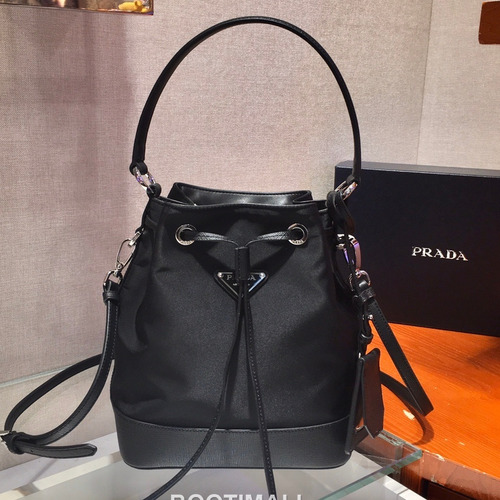 Prada Nylon Bucket Bag with Saffiano Calfskin Trim and Drawstring Closure 프라다 나일론 사피아노 카프스킨 트림 드로스트링 버킷백 1BE055 24cm |