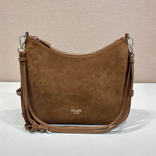Prada Calfskin Hobo Shoulder Bag with Embossed Logo and Zip Closure 프라다 카프스킨 엠보스드 로고 지퍼 호보 숄더백 1BC288 33cm |
