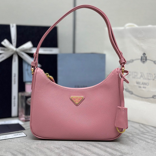 제품명 Prada Hobo Crossgrain Calfskin Shoulder Bag with Triangle Logo Strap 프라다 호보 크로스그레인 카프스킨 트라이앵글 로고 스트랩 숄더백 핑크 1BC204 22cm