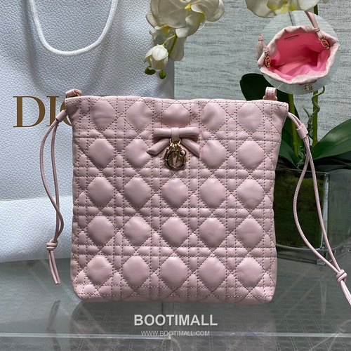 Dior Adiorable Lambskin Quilted Drawstring Bucket Bag with Bow Charm 디올 아디오러블 램스킨 퀼팅 보우 참 드로스트링 버킷백 블랙 20cm |