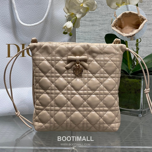 Dior Adiorable Lambskin Quilted Drawstring Bucket Bag with Bow Charm 디올 아디오러블 램스킨 퀼팅 보우 참 드로스트링 버킷백 블랙 20cm |