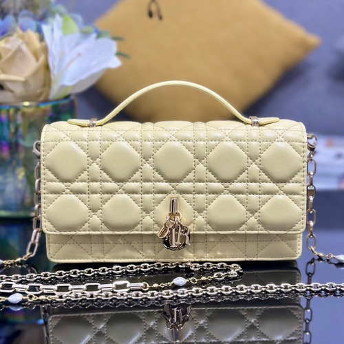 제품명 Dior Miss Dior Lambskin Chain Flap Shoulder Bag with Top Handle Charm 디올 미스디올 램스킨 체인 플랩 탑핸들 참 숄더백 라이트옐로우 M0997 21cm