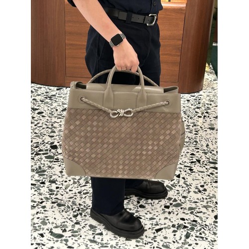 고객님께서 지금보시고 계시는 상품은 보테가베네타 안디아모 보이저 라인의 인트레치아토 카프스킨 트래블 토트백입니다. 유연하면서도 내구성이 뛰어난 카프스킨 가죽을 정교하게 엮어 완성한 디자인으로, 브랜드 특유의 구조적 아름다움을 담아낸 아이템입니다. 넉넉한 사이즈로 일상은 물론 짧은 여행까지 대응 가능한 실용성을 갖추고 있으며, 탈부착 가능한 스트랩으로 다양한 스타일 연출이 가능합니다. 구성품: 정품 박스, 더스트백, 쇼핑백, 구매 영수증 포함 인트레치아토 위빙 가죽 적용 탈부착 가능한 스트랩 구성 대용량 수납 구조 트래블 토트백 디자인