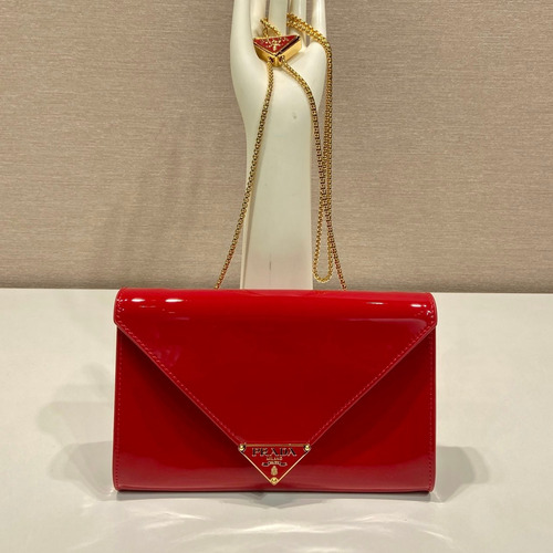 Prada Patent Leather Envelope Clutch Bag with Triangle Logo Chain Strap Detail 프라다 페이턴트 레더 트라이앵글 로고 체인 스트랩 엔벨로프 클러치백 1BP051 20cm |