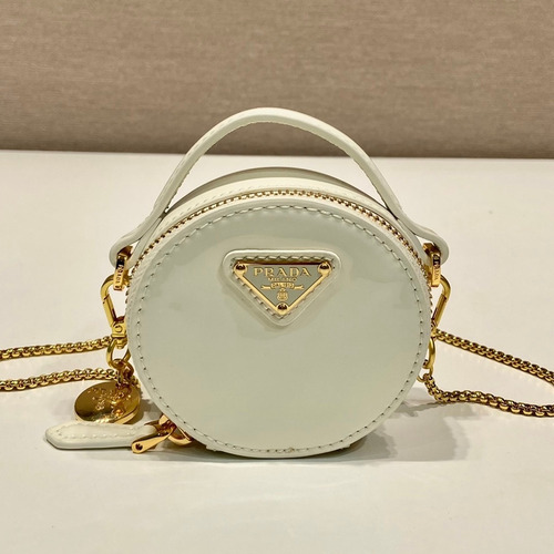 Prada Patent Leather Round Mini Clutch Bag with Chain Strap Detail 프라다 페이턴트 레더 라운드 체인 스트랩 미니 클러치백 1NR023 8cm 8