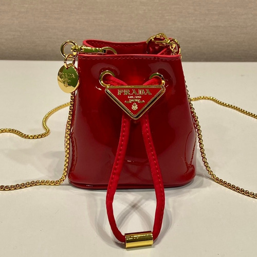 Prada Patent Calfskin Bucket Crossbody Bag with Triangle Logo Chain Strap Detail 프라다 페이턴트 카프스킨 트라이앵글 로고 체인 스트랩 버킷 크로스백 1NR016 10cm |