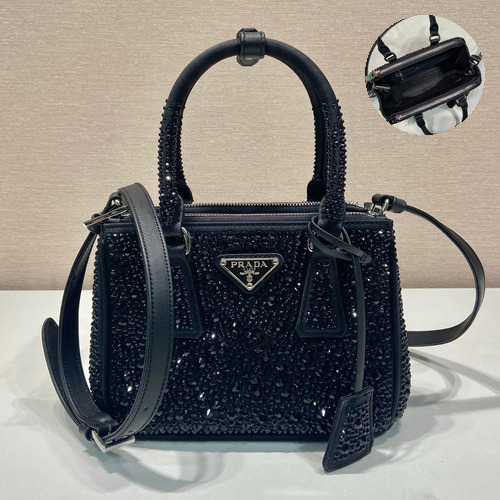 Prada Crystal Satin Top Handle Bag with Dual Zip Pocket and Adjustable Strap 프라다 크리스탈 새틴 더블 지퍼 스트랩 핸드백 1BA906 20cm |