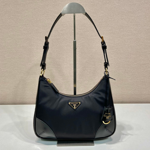 Prada Nylon Patent Leather Hobo Bag with Curved Shape and Metal Detail 프라다 나일론 페이턴트 가죽 커브드 메탈 디테일 호보백 1BC214 27cm |
