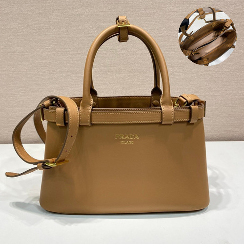 고객님께서 지금보시고 계시는 상품은 프라다의 카프스킨 가죽으로 제작된 컴팩트한 토트백으로, 세련된 디자인과 실용적인 구조를 동시에 갖춘 제품입니다. 미니멀한 실루엣과 고급스러운 소재감이 조화를 이루며, 다양한 스타일에 자연스럽게 어울리는 데일리 아이템입니다. 구성품: 정품 박스, 더스트백, 쇼핑백, 구매 영수증 포함 카프스킨 가죽으로 제작된 컴팩트 토트백 내부 3단 수납 구조로 효율적인 정리 가능 탈부착 스트랩으로 다양한 스타일 연출 가능 데일리 및 외출용으로 활용도 높은 디자인