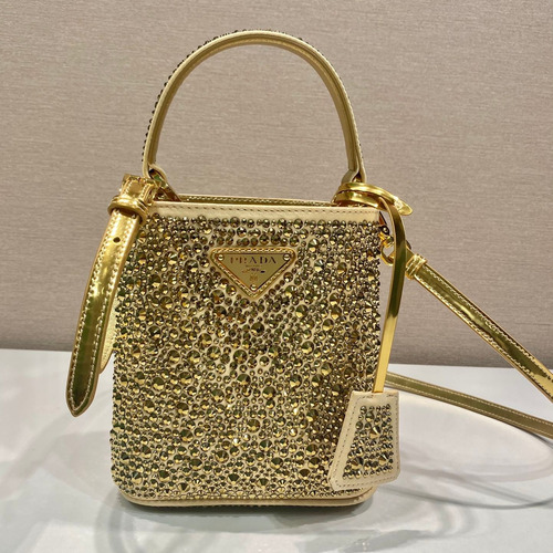 Prada Crystal Panier Bucket Bag with Adjustable Strap and Top Handle 프라다 크리스탈 파니에 스트랩 버킷백 1BA373 15cm |