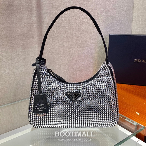 제품명 Prada Crystal Mesh Hobo Bag with Zip Closure and Strap Detail 프라다 크리스탈 메쉬 지퍼 스트랩 호보백 1NE515 23cm