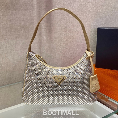Prada Crystal Mesh Hobo Bag with Zip Closure and Strap Detail 프라다 크리스탈 메쉬 지퍼 스트랩 호보백 1NE515 23cm |