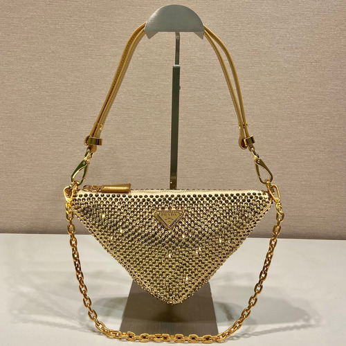 Prada Crystal Triangle Shoulder Bag with Leather Handle and Chain Strap 프라다 크리스탈 트라이앵글 레더 핸들 체인 스트랩 숄더백 1BC190 26cm |