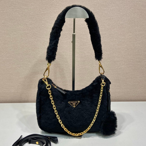 제품명 Prada Goat Fur Hobo Bag with Chain Strap and Fur Handle 프라다 고트 퍼 체인 스트랩 퍼 호보백 1BC204 23cm
