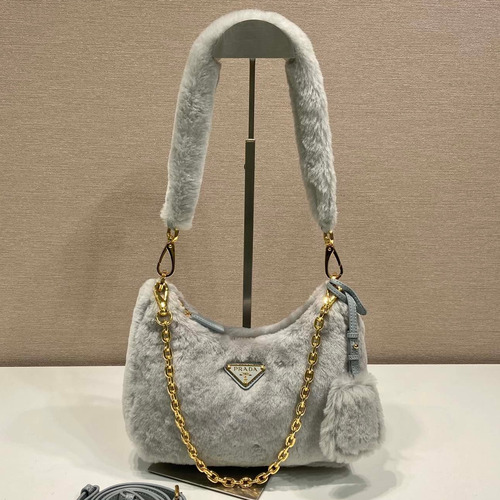 Prada Goat Fur Hobo Bag with Chain Strap and Fur Handle 프라다 고트 퍼 체인 스트랩 퍼 호보백 1BC204 23cm |