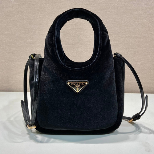 Prada Velvet Bucket Bag with Enamel Triangle Logo and Adjustable Strap 프라다 벨벳 트라이앵글 로고 스트랩 버킷백 1BA410 17cm |