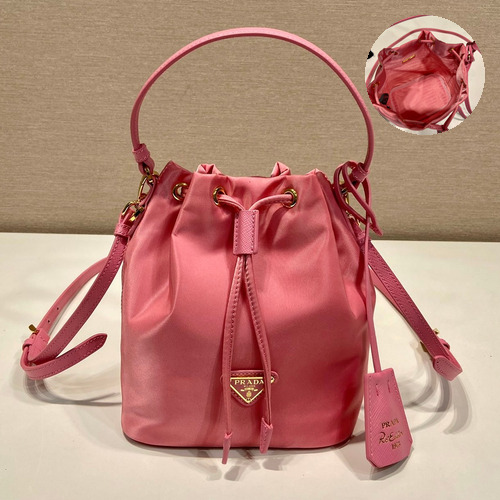 Prada Nylon Bucket Bag with Leather Strap and Key Holder Detail 프라다 나일론 레더 스트랩 키홀더 버킷백 1BE067 15.5cm |