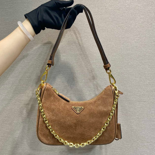 Prada Suede Calfskin Leather Hobo Bag with Chain Strap and Adjustable Shoulder Strap 프라다 스웨이드 카프스킨 체인 스트랩 조절 숄더 호보백 1BC204B 23cm |